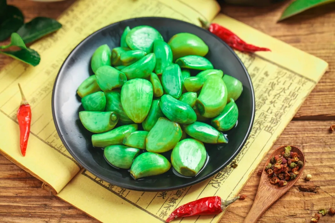 此外,全國(guó)各地還有做臘八面、泡臘八蒜、曬臘八豆腐等食俗。相傳北方之前有一些不產(chǎn)或少產(chǎn)大米的地方,人們不吃臘八粥,而是吃臘八面。泡臘八蒜,即將蒜瓣去掉老皮,浸泡在醋中,到了過年搭配餃子吃,是北方尤其華北地區(qū)的一個(gè)習(xí)慣。民間還有“蒜”與“算”字同音,商戶要在這天算清收支盈虧的說法。