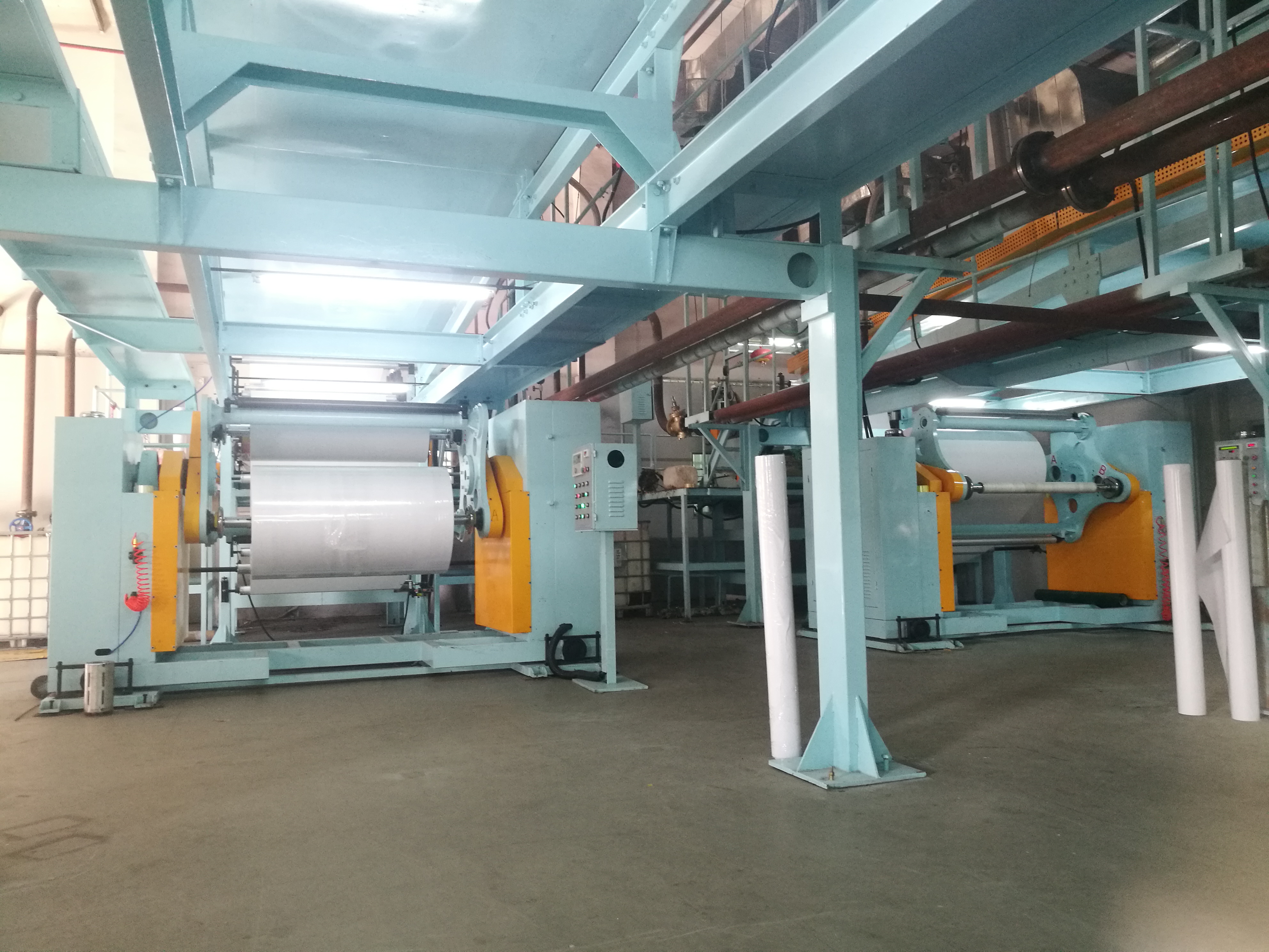 雙面涂布機(jī)采用矢量變頻無級調(diào)速大滾筒、牽引輥與網(wǎng)紋輥同步調(diào)速;網(wǎng)紋輥帶刮刀涂布方式,備有多種涂布量的網(wǎng)紋輥供選擇;移動式刮刀裝置;采用分段獨立恒溫半導(dǎo)體不銹鋼發(fā)熱管導(dǎo)熱油交換器加熱風(fēng)干燥系統(tǒng),可調(diào)式內(nèi)循環(huán)吸排氣裝置;烘箱內(nèi)導(dǎo)輥同主軸同步轉(zhuǎn)動,開門式烘箱及穿膜操作平臺;網(wǎng)紋輥、牽引壓輥由氣動電磁閥控制;自動計米裝置;收放卷軸采用鍵子式氣脹軸裝置,裝卸料操作方便;整機(jī)采用PLC電腦系統(tǒng)自動控制張力。