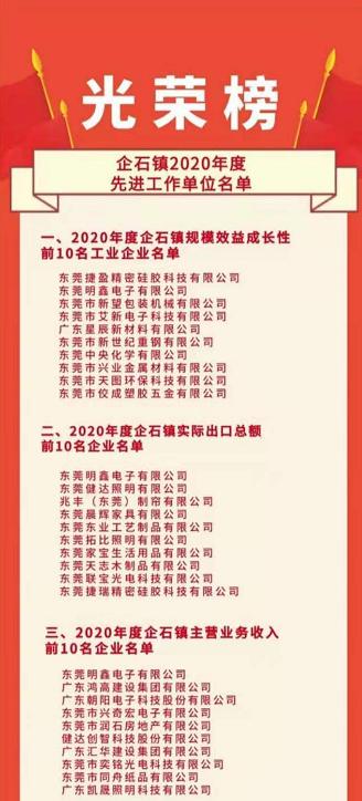 3月3日上午,企石鎮(zhèn)召開2020年度工作總結(jié)大會(huì),發(fā)布了《企石鎮(zhèn)2020年度先進(jìn)工作單位名單》,包括《2020 年度企石鎮(zhèn)規(guī)模效益成長性前10名工業(yè)企業(yè)名單》《2020 年度企石鎮(zhèn)實(shí)際出口總額前10名企業(yè)名單》《2020 年度企石鎮(zhèn)主營業(yè)務(wù)收入前10名企業(yè)名單》等10份名單。會(huì)議對(duì)2020年度企石鎮(zhèn)主營業(yè)務(wù)收入前10名企業(yè)進(jìn)行了現(xiàn)場(chǎng)表彰。新望公司有幸入列:企石鎮(zhèn)2020年度規(guī)模效益成長性前10名。